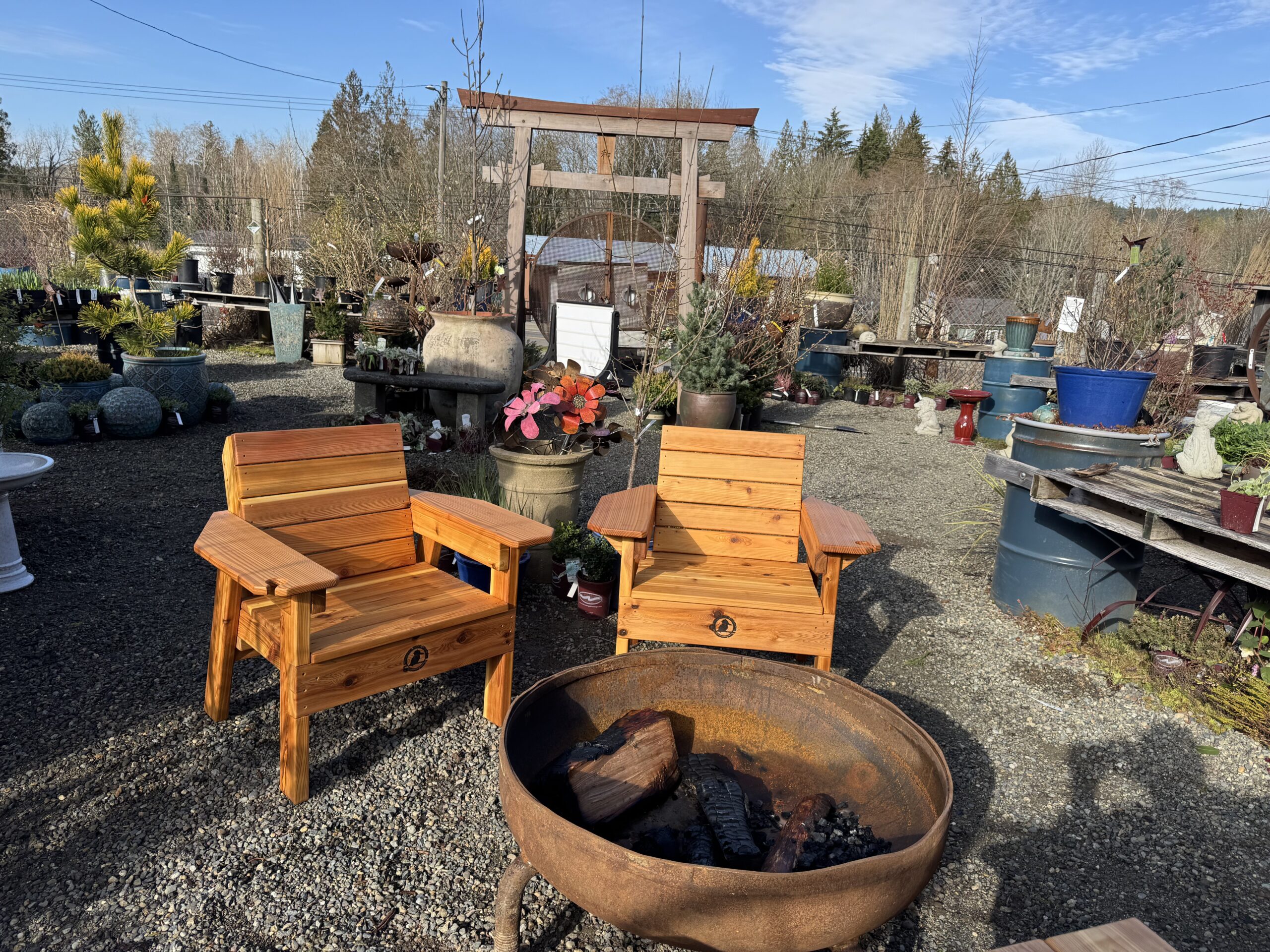 Made of solid cedar and protected with a lovely oil based finish. Perfect for gathering with friends around the fire pit or those long evening patio conversations.